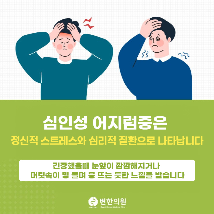 안녕하세요. 심인성 어지럼증을 치료하는 변한의원 입니다.