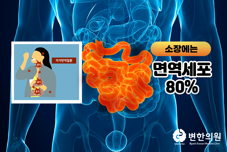 또한, 면역세포의 80%를 분포하고 있는 면역기관이기도 해 소장에 염증이 생기면 자가면역질환이 오게 됩니다.