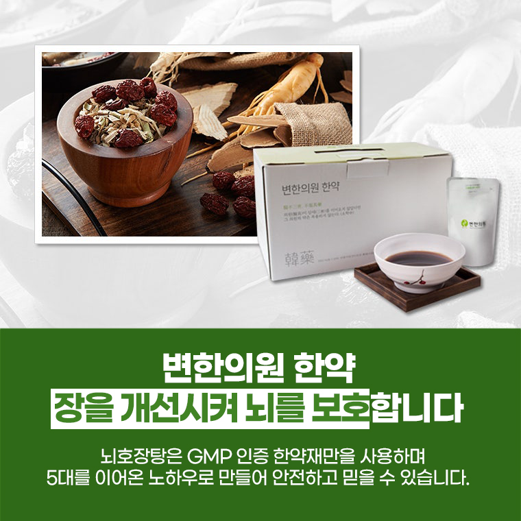 5대를 이어온 노하우와 30년 넘게 장질환을 전문으로 치료한 실력을 바탕으로 장기능강화와 분해효소 생성 등은 물론 신체 내 염증과 독소를 제거하여 장 건강과 함께 뇌 건강을 정상으로 돌려드립니다.