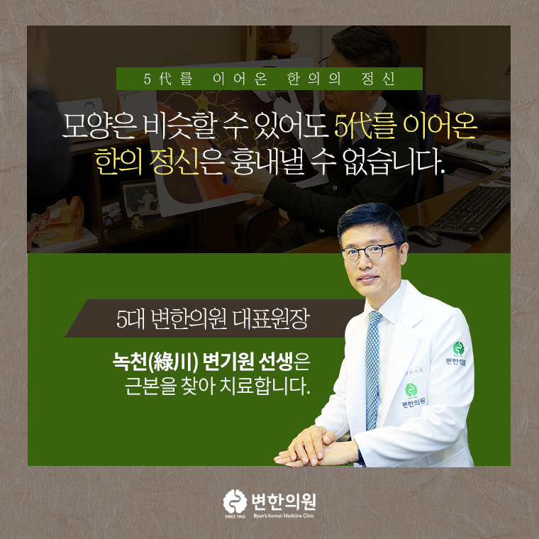 변한의원은 1902년부터 5대를 이어오고 있는 깊은 역사와 전통을 가지고 있는 한의원입니다.