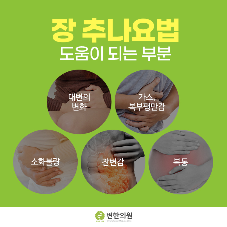 이를 해결하고 예방하기 위해 추나한의원 변한의원에서는 장 추나요법을 시행하는 것입니다.